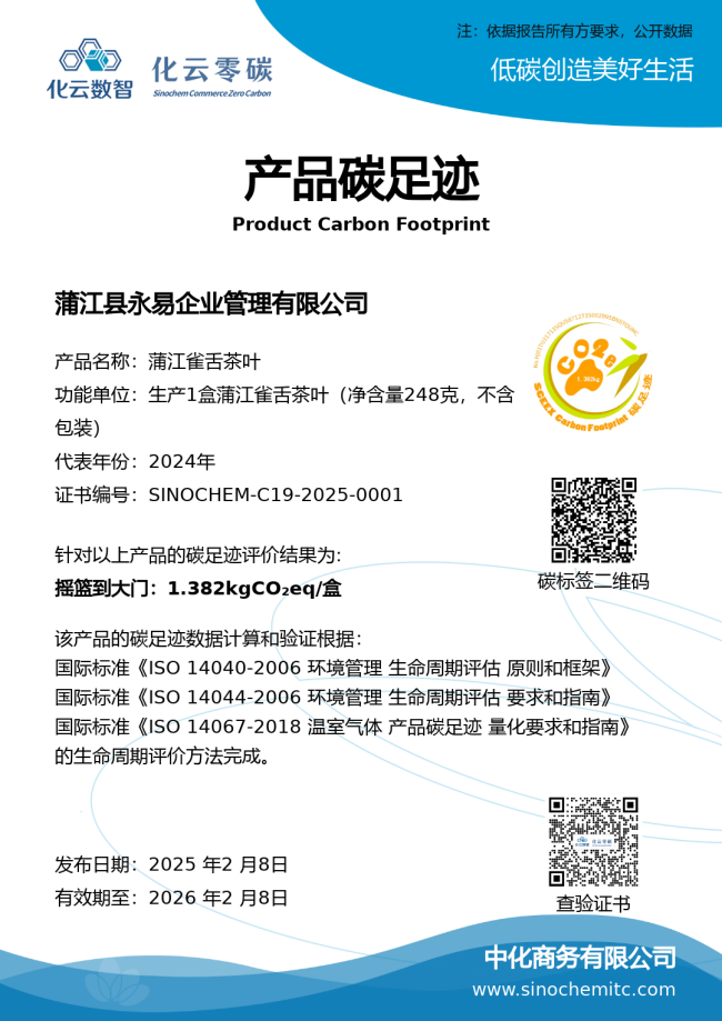 ×÷ΪÆÑ½­Ïعú¼ÒµØÀí±ê¼Ç²úÆ·£¬£¬£¬£¬£¬£¬¿¨¿¨ÍåÌüÉÌÎñΪ¡°ÆÑ½­È¸Éࡱ²èÒ¶ÌṩרҵµÄ̼×ã¼£ºËËã·þÎñ£¬£¬£¬£¬£¬£¬ÒÀ¾Ý¹ú¼Ò±ê×¼GB/T?24067-2024¡¶ÎÂÊÒÆøÌå?²úƷ̼×ã¼£?Á¿»¯ÒªÇóºÍÖ¸ÄÏ¡·£¬£¬£¬£¬£¬£¬¶Ô¡°ÆÑ½­È¸Éࡱ´ÓÔ­ÖÊÁÏ»ñÈ¡µ½²úÆ·Éú²ú½×¶Î£¨´ÓÒ¡Àºµ½´óÃÅ£©µÄÎÂÊÒÆøÌåÅÅ·ÅÁ¿¾ÙÐÐÁ˾«×¼ºËË㣬£¬£¬£¬£¬£¬×îÖÕÈ·¶¨Æä̼ÅÅ·ÅÁ¿Îª1.382kgCO2eq/ºÐ£¨¾»º¬Á¿248¿Ë£¬£¬£¬£¬£¬£¬²»º¬°ü×°£© ¡£¡£Ëæºó£¬£¬£¬£¬£¬£¬Í¨¹ýŲÑÇÈÏ֤Ϊ²úÆ·½ÒÏþ̼×ã¼£ºË²éÖ¤Ê飬£¬£¬£¬£¬£¬²¢Óɳɶ¼»áÂÌÉ«µÍ̼Éú³¤Ð­»áÒÀÍС°Ì¼»ÝÌ츮¡±»úÖÆ¼¯ÖÐ×¢Ïú̼ÅÅ·ÅÁ¿£¬£¬£¬£¬£¬£¬×îÖÕÓÉËÄ´¨ÁªºÏÇéÐÎÉúÒâËùÊÚÓ衰̼Öк͡±±êÇ© ¡£¡£